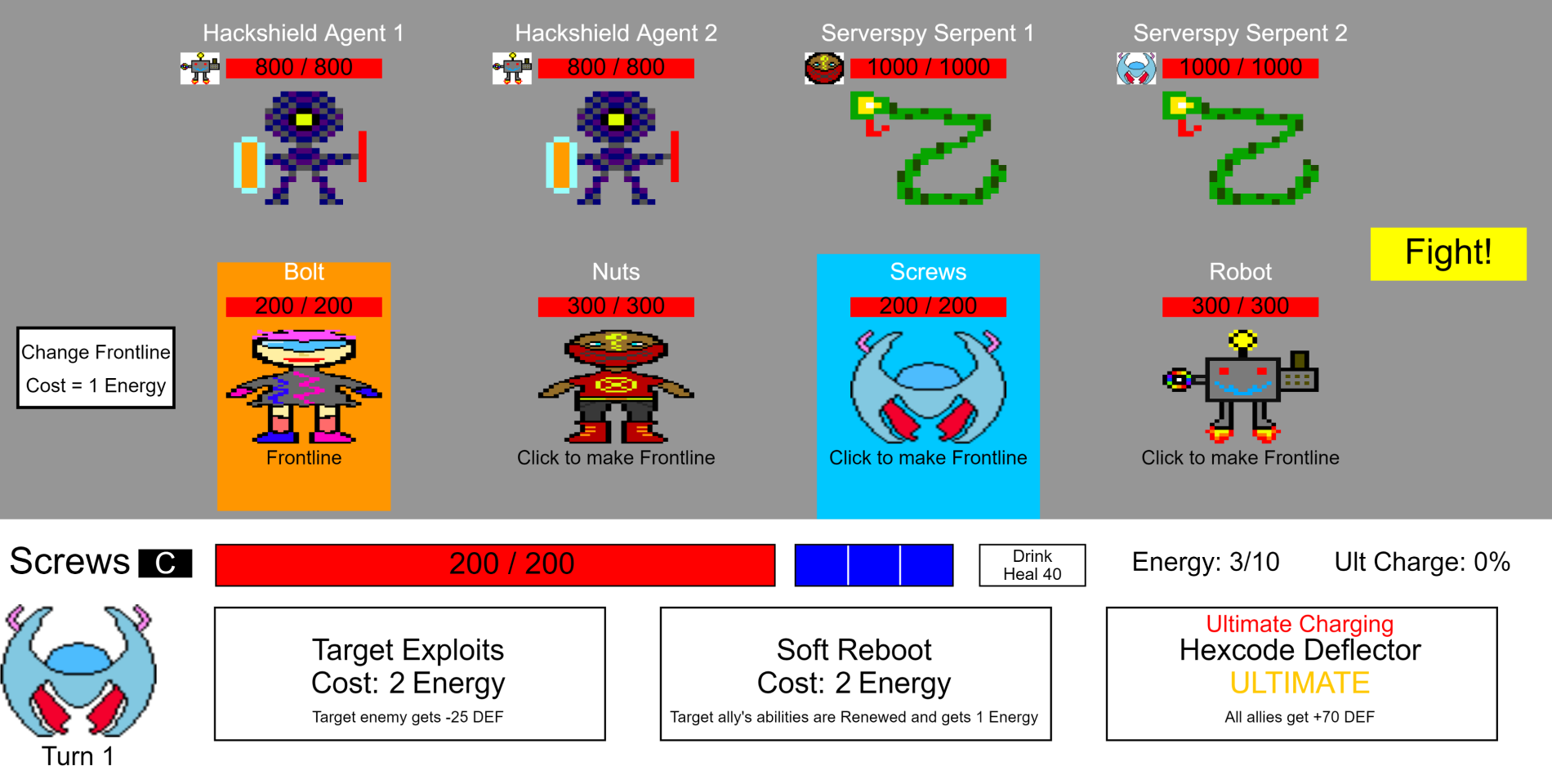 I have created many games in college and university for which I attained high marks, such as Re-Boot, a 2D puzzle platformer about a clone-spawning robot. J'ai crée plusieurs jeux au CÉGEP et à l'université pour lesquels j'ai reçu des bonnes notes, comme Re-Boot, un jeu de platforme et de réflexion sur un robot qui fabrique des clones.